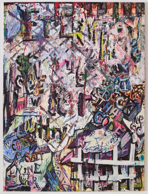 Speaking of your thick paint application, you also utilize a wide range of materials and techniques from putting canvases through the wash to embedding small trinkets into the paint. Do you have a consistent studio process or do you approach each painting differently?