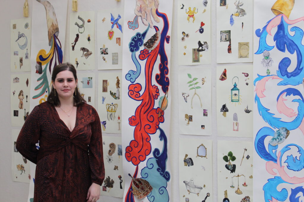 Though the future seems a bit bleak at our present moment in the pandemic, I am hoping to be able to push my installations further, I would like to create a room wide or gallery wide collection of paintings and installations. I am currently working on some smaller gouache pieces at the moment that are acting as inspiration for a larger series I plan to begin in the fall. I also want to focus on my curatorial practice as well, curating shows and participating in collaborations. Ultimately, however, I would like to be working in a museum in some capacity while also continuing my studio practice. Being surrounded by artwork and conversation about art and culture are some of my greatest inspirations when working. When my mind is growing I can definitively say that my art will be as well.