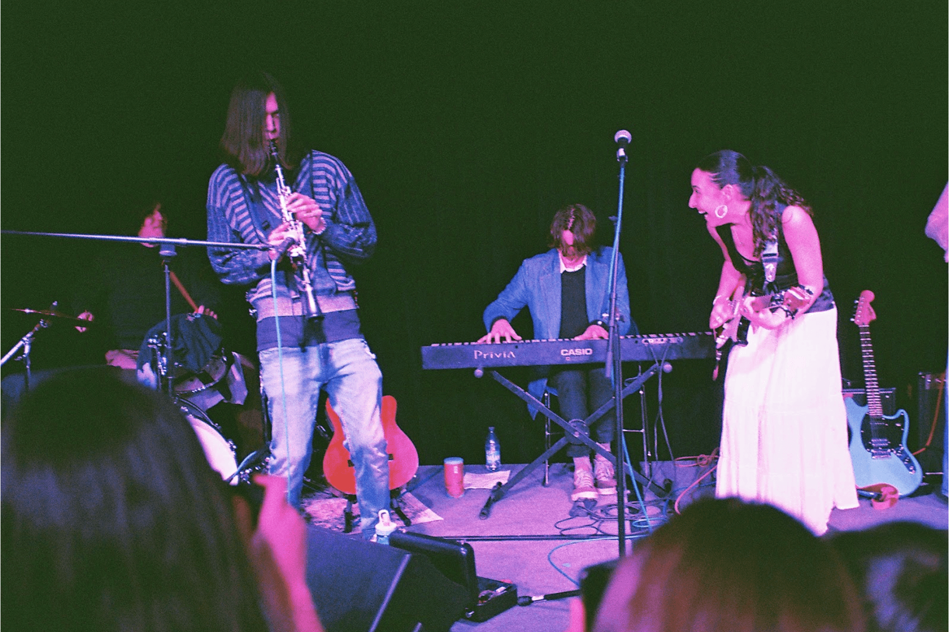 Then Griffin came along. We had met but had not really clocked each other properly. I saw him performing the Battle of the Bands and I thought he’s an amazing keyboard player and also songwriter. I was like, we have to do something together. So I was like, “hey, Griffin, join the band” and so he joined. Then this semester, Manya joined on bass, which is super exciting!